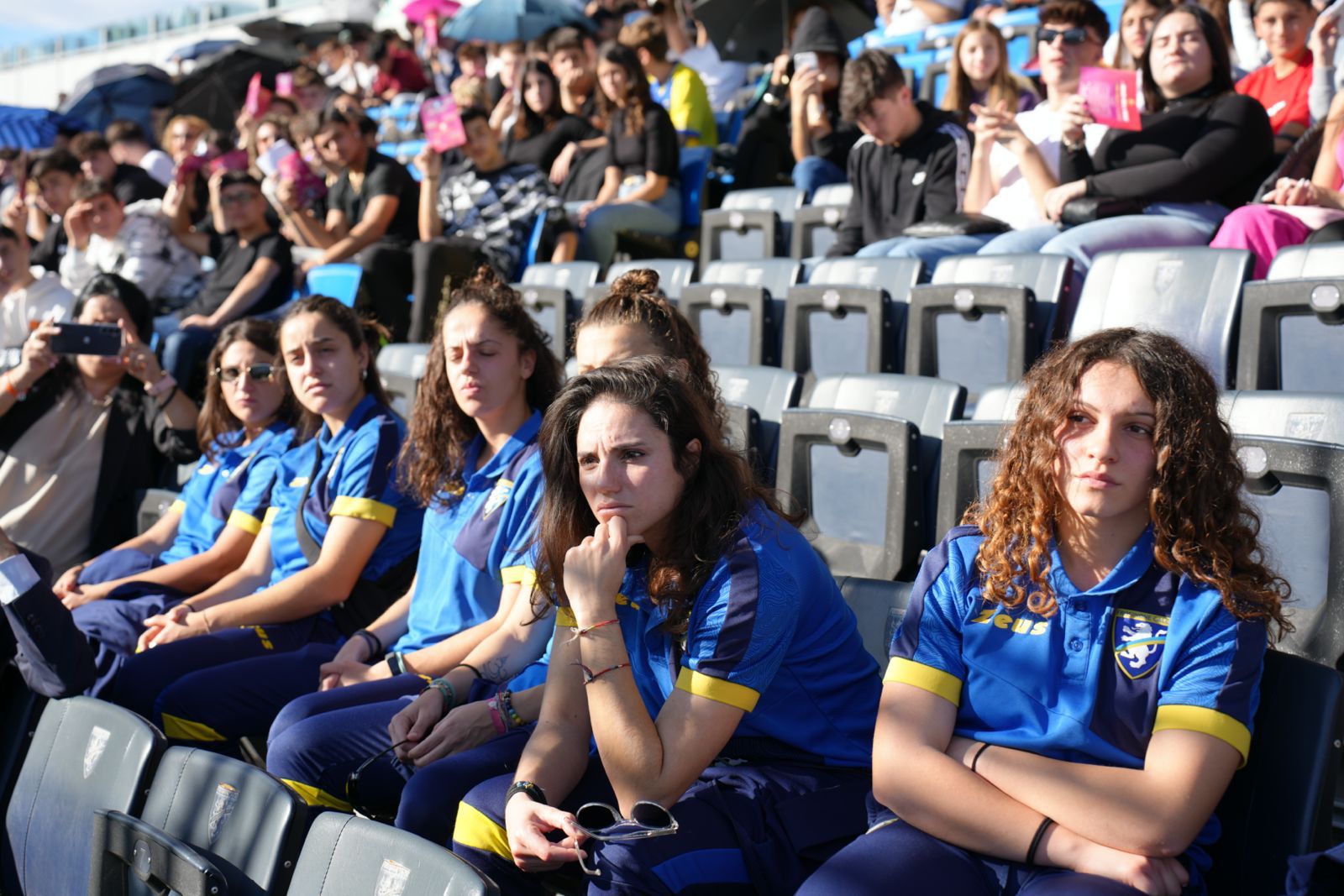 Gli Istituti scolastici della provincia ciociara hanno risposto in maniera capillare: 64 studenti dall’Istituto Comprensivo 2 di Anagni, 50 studenti dall’Istituto Comprensivo Ferentino 1 (1 plesso di Fumone), 100 studenti dal ‘Dante Alighieri’ di Anagni, 40 studenti dell’Itis ‘Don Morosini’ di Ferentino, 150 studenti dall’Istituto ‘Alessandro Volta’, 40 studenti dall’Istituto Comprensivo 2 di Frosinone, 60 studenti dall’Istituto ‘Anton Giulio Bracaglia’ di Frosinone, 104 studenti dall’Istituto Comprensivo 2 di Veroli, 40 studente dell’Istituto Comprensivo 4 di Frosinone, 35 studenti da Ceccano, 9 studenti dal ‘Nicolucci’ di Isola del Liri e 75 studenti dal ‘Sulpicio’ di Veroli. Presente anche la formazione femminile del Frosinone che prende parte al campionato di serie C.