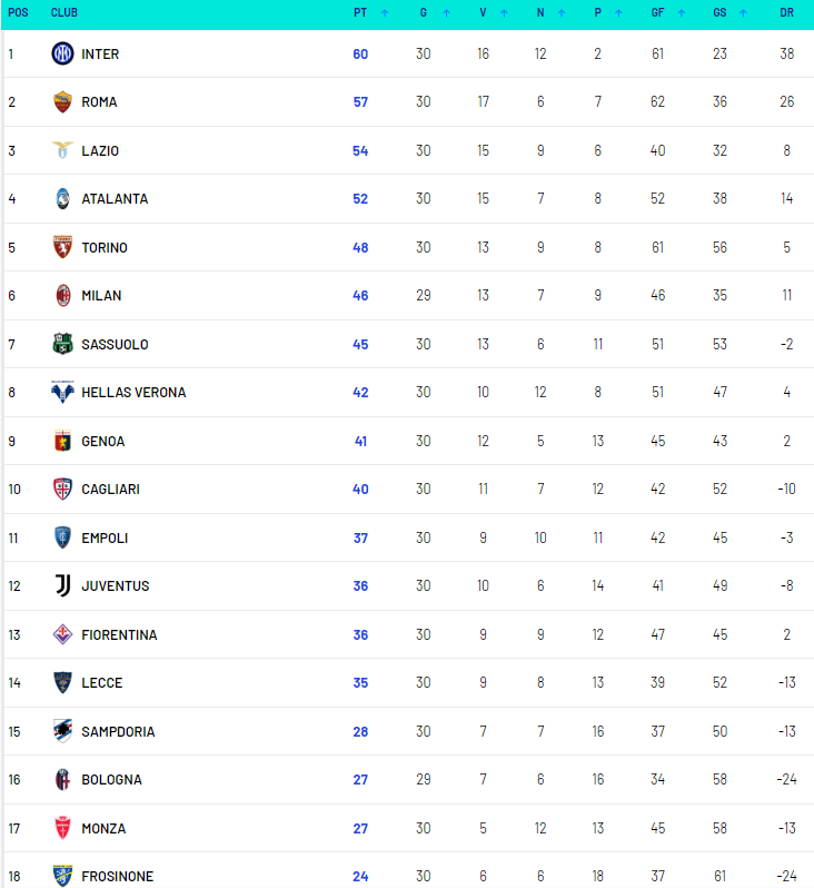 - 17/5: Frosinone-Juventus