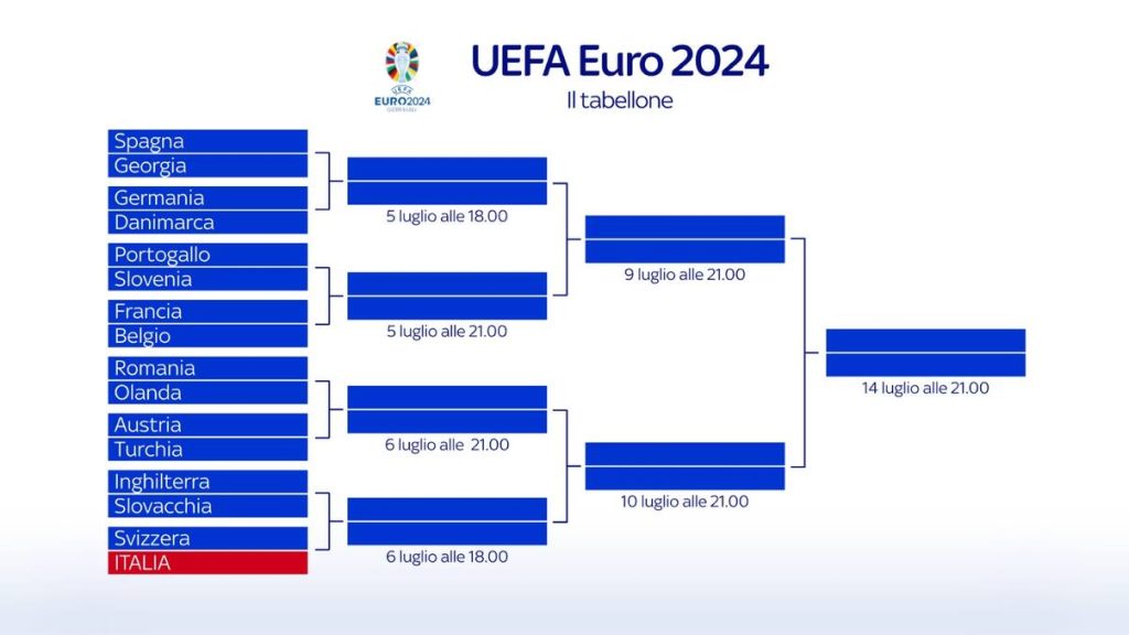Dopo la chiusura dei gironi è stato definito il tabellone di Euro 2024 con tutti gli accoppiamenti per gli ottavi di finale. L’Italia di Luciano Spalletti è dalla parte giusta del tabellone, con l’unica big dalla parte degli Azzurri che è l’Inghilterra.