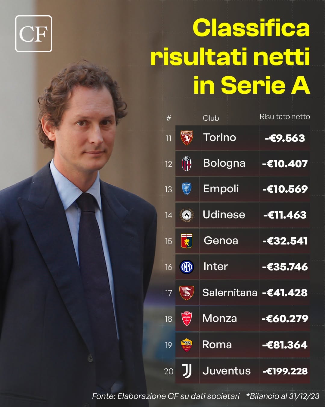 CalcioeFinanza, testata specializzata nei contenuti finanziari del mondo del calcio, ha pubblicato la classifica dei risultati netti in Serie A. Ma cosa si intende per risultati netti? “Il dato (che è in milioni di euro) rappresenta il saldo finale tra ricavi (tra cui anche quelli derivanti da player trading) e costi registrati in un esercizio contabile, dopo aver considerato imposte, ammortamenti e altri oneri finanziari. Questo valore indica se il club ha generato utile (profitti) o perdita nel periodo di riferimento.